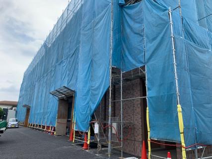 足場もそうですが、この現場にシートを張るのも大変な作業だったと思います。